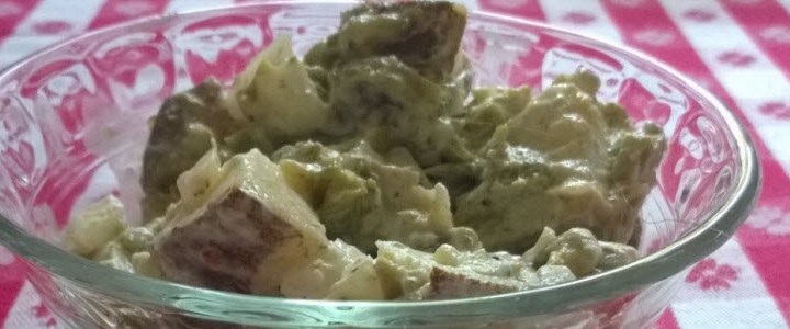Quick and easy potato salad; good for using up left-overs. Ingredients 2 left-over baked potatoes. (Ours had been steamed on the grill.) Skins removed. 1/2 can (~ 7.5 oz.) French-cut green beans. (Ours were left-overs also.) 1/4 onion, diced. 2 … Continue reading Dill & Sour Cream Green Bean Potato Salad