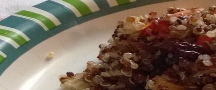 Serves: 4 Ingredients 1 c. dried tricolor quinoa 2 c. water 1/4 c. raisins 1/4 c. apple cider vinegar 2 Tbsp. honey 2 Tbsp. olive oil 1/4 c. dried apricots (apx. 3-4 dried apricots), sliced into strips 1/2 c. cherry … Continue reading Israeli-style Quinoa Salad